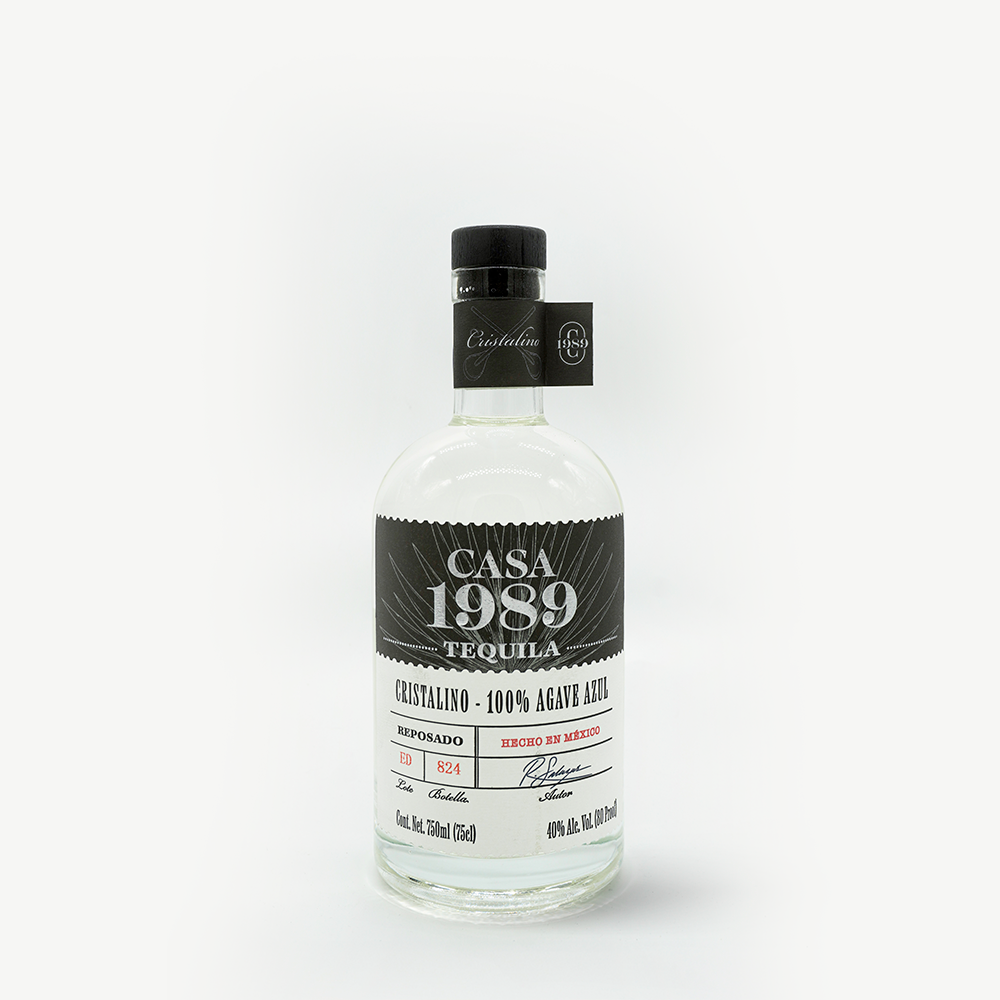 Tequila Casa 1989 Cristalino es una mezcla entre el Blanco y el Reposado, donde este último se filtra en carbón activado para eliminar el color, conservando su aroma y sabor. Elaborado con agave Tequilana Weber variedad azul de Los Altos de Jalisco y madurado tres meses en barricas de roble americano, combina suavidad, frescura y un perfil elegante. Sin aditivos y con 40% Alc. Vol., ofrece notas dulces de madera y vainilla con toques herbales y minerales, logrando una experiencia refinada y equilibrada.